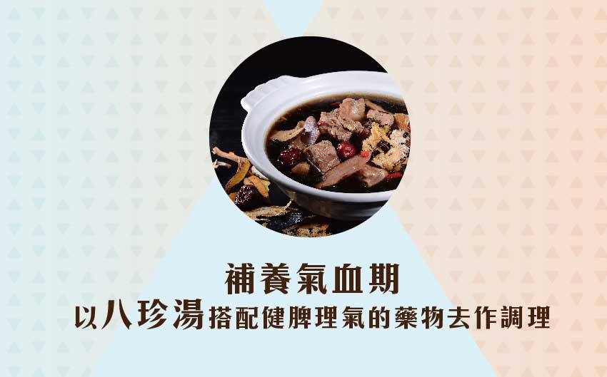待惡露排盡過後,則進入中期的補養氣血,為期10天左右。此期的目的主要是補足生產過程中所消耗的氣血,由於產後的脾胃功能會較差,因此不可吃太滋膩,免得消化不良。臨床常選用八珍湯搭配健脾理氣的藥物去做調理,如此一來不僅可以消除產後的疲勞感,也能夠調整身體的水液分布,減輕產後水腫的情形。氣血重新補足以後,較不容易受外邪侵擾,就比較不會有血虛或是外感頭痛的問題發生,而且乳汁生化才會有來源,同時可以處理乳汁分泌不足的問題。