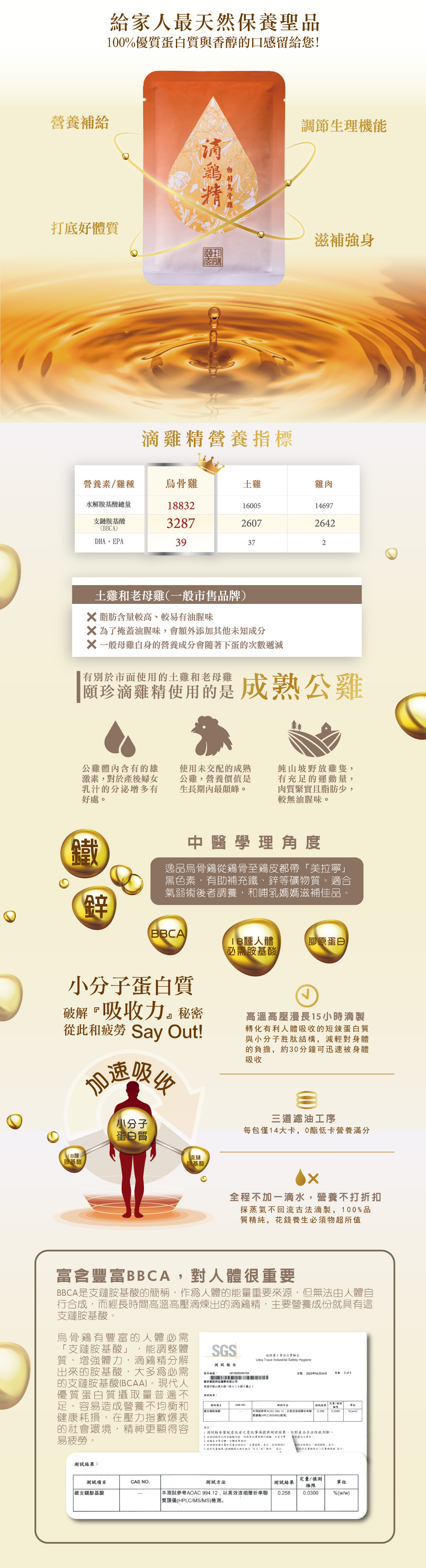 ■ 產品成份:100%台灣白羽烏骨滴雞精