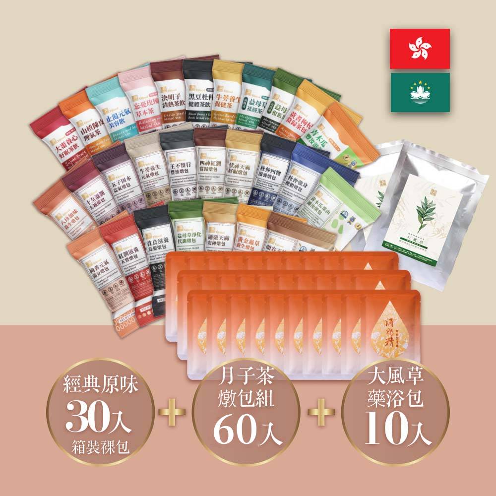 【香港澳門】坐月子全周期:茶飲30天+藥膳燉包30天+原味滴雞精30入