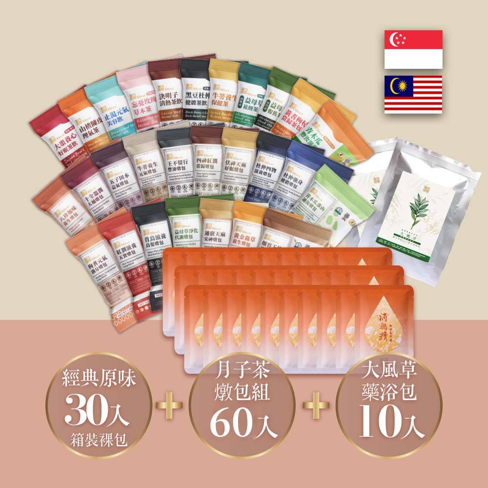 【新加坡、馬來西亞】坐月子全周期:茶飲30天+藥膳燉包30天+原味滴雞...