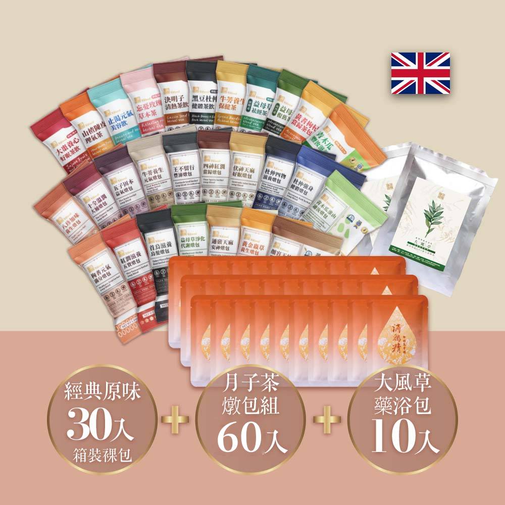 【英國】坐月子全周期:茶飲30天+藥膳燉包30天+原味滴雞精30入