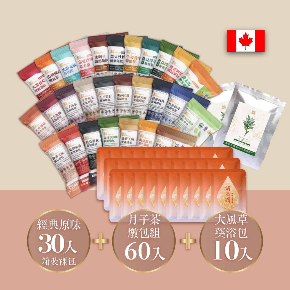 【加拿大】坐月子全周期:茶飲30天+藥膳燉包30天+原味滴雞精30入